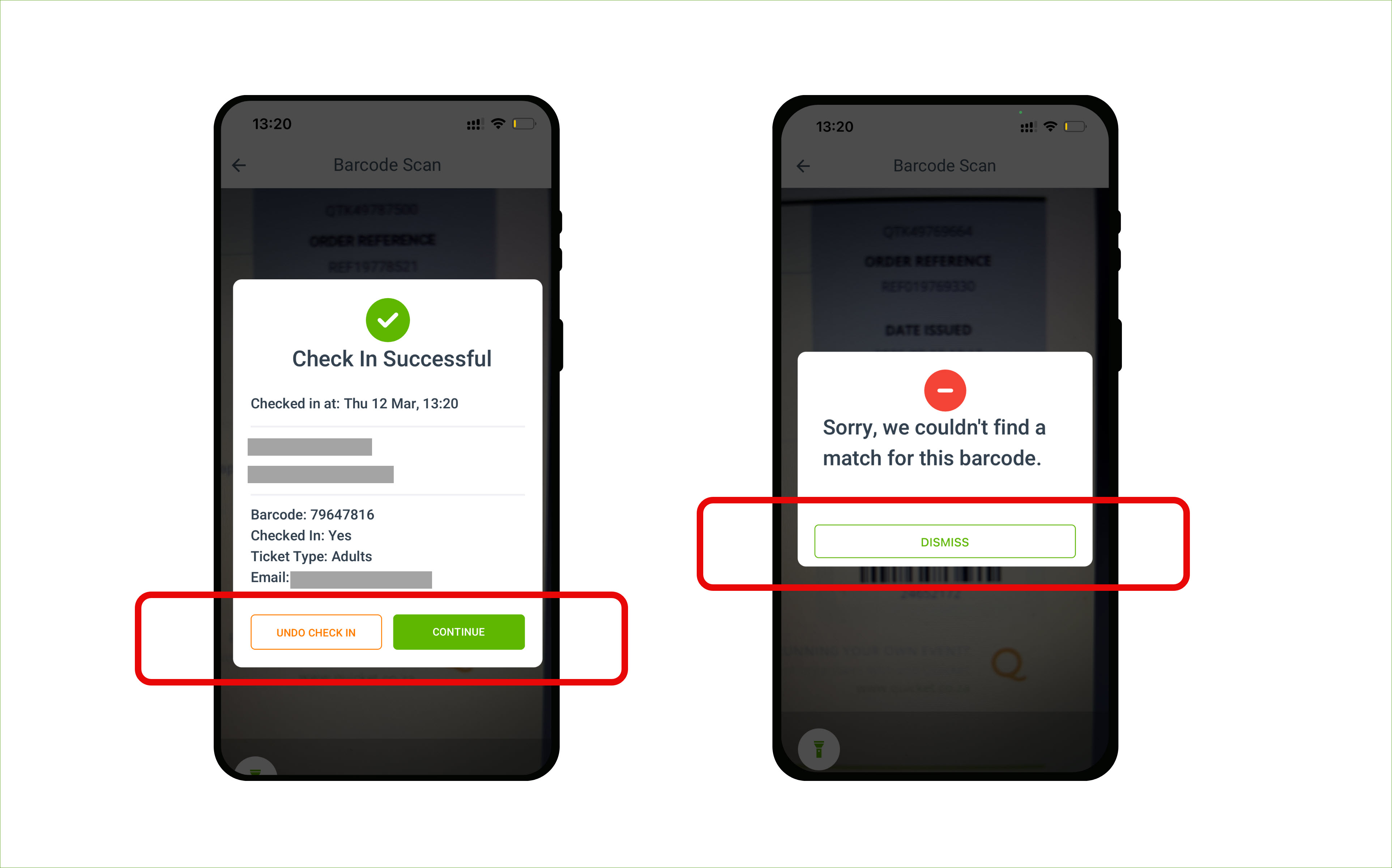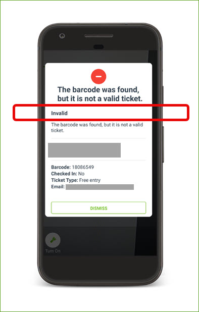 If the barcode is invalid (e.g. the ticket was cancelled), you'll be notified so you can investigate further.